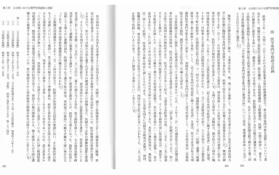 - 大分県県議会議員在任中、昭和18年6月30日の大分県参事会に関連した政務調査会で「大分県立病院を付属病院とした大分県立医学専門学校の設立」の意見があり、大分県医師会で可決された大分県立医学専門学校新設の要望書を昭和18年12月1日の通常県会で仙波梧楼議員より提出することになった。しかし、組織・資金面が問題で立ち消えとなり、大分県医師会より県に提出した大分県立医学専門学校新設の機会は実らなかった([大分県における専門学校誘致と挫折 吉田豊治 著 みもざ書房 平成11年1月 発行]より)。