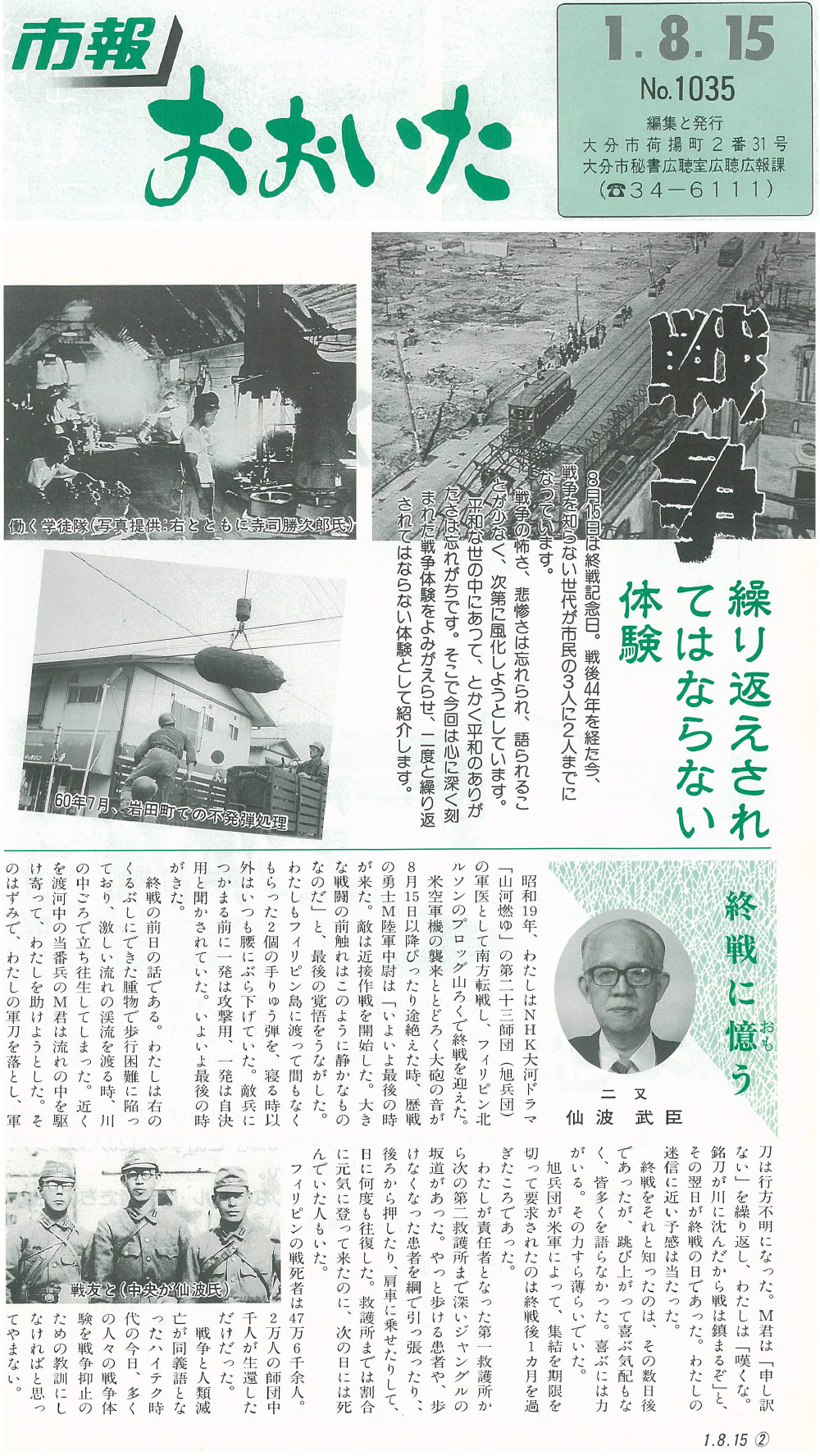 - 戦後、武臣-祖父は比島で行方不明として安否がわからず、所属兵団の全滅と捕虜生活から解放され復員するまでの逸話を子供の頃によく聞かされた。その後、医業に差し障りが出るほど熱心にフィリピンで慰霊と遺骨収集を行い、祖母が不満を漏らすほど年金の全てを遺族会に寄付する姿勢は、私には不思議な行為に感じていたが、最近ようやく、祖父のその気持ちが理解できるようになった。